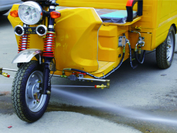 1、整车冲洗方式分为两种,左右冲洗和手持冲洗 ; 左喷头冲洗路面,角度可根据路况随意调整, 达到降尘、保洁合一 ; 右喷头冲洗路牙、斑马线,角度可根据路况调整 ; 手提式高压水枪冲洗城市“牛皮癣”、小广告的清除、护栏的清洗 ;